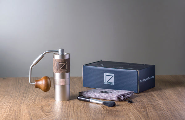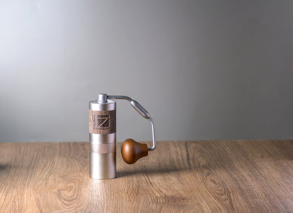 The 1Zpresso Q, is manufactured from high-grade Aluminium alloy with a brushed/matted finish for easy cleaning. A wooden section embellished with the 1Zpresso brand allows for easy grip when grinding.