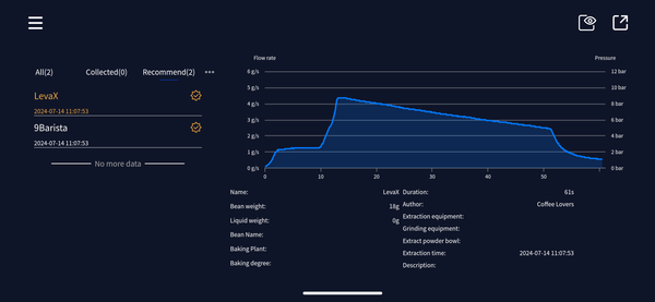 Using the app on your iOS or Android device, Themis allows you to monitor flow rate and weight in real time. An optional pressure monitoring device can be used in conjunction to profile pressure and output flow together. Store profiles to track your extraction over time with different recipes, machines and brew methods.